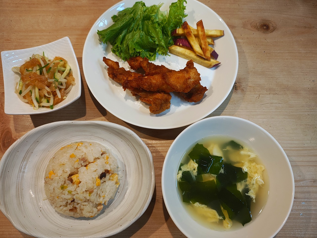 【醬油、酒、生姜、にんにく】たれに漬け込みます。