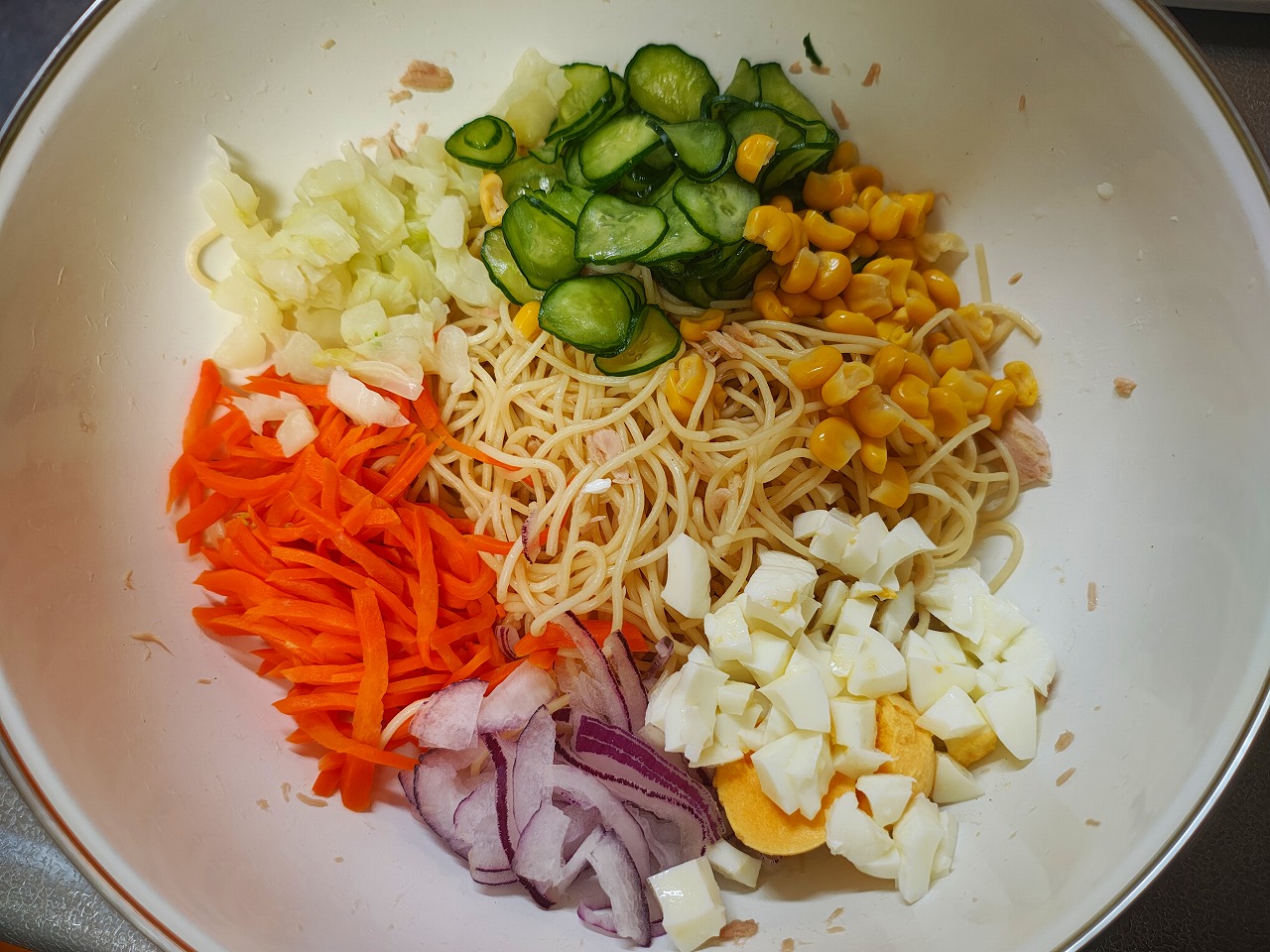 紫玉ねぎ、ゆで卵、ツナを合わせて