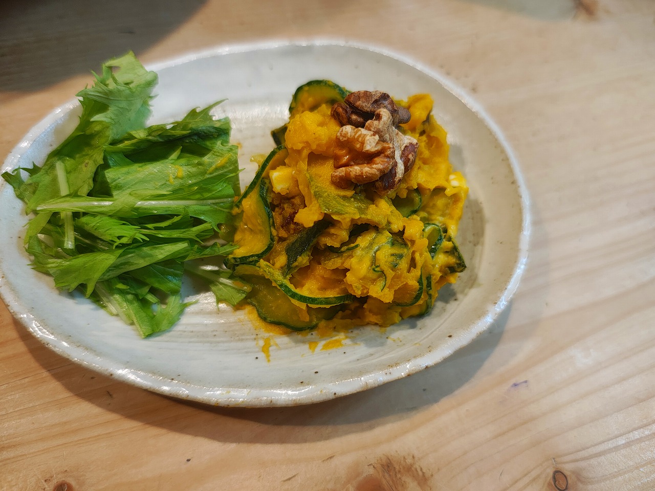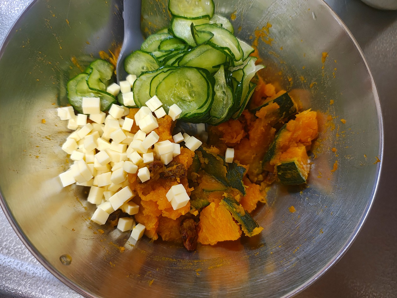 かぼちゃ、レーズン、きゅうり、プロセスチーズを合わせて