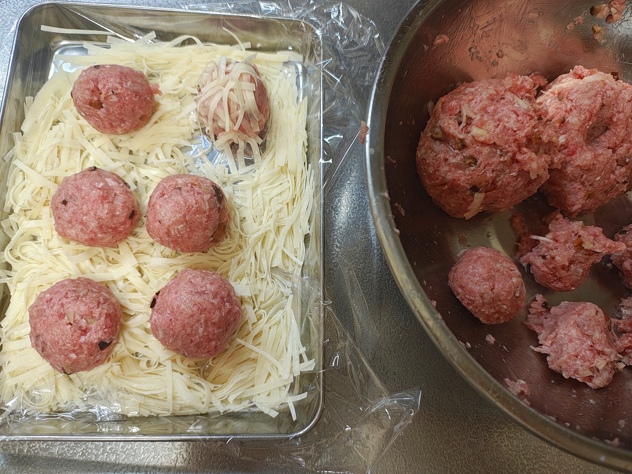 肉だねの周りにまぶしました。
