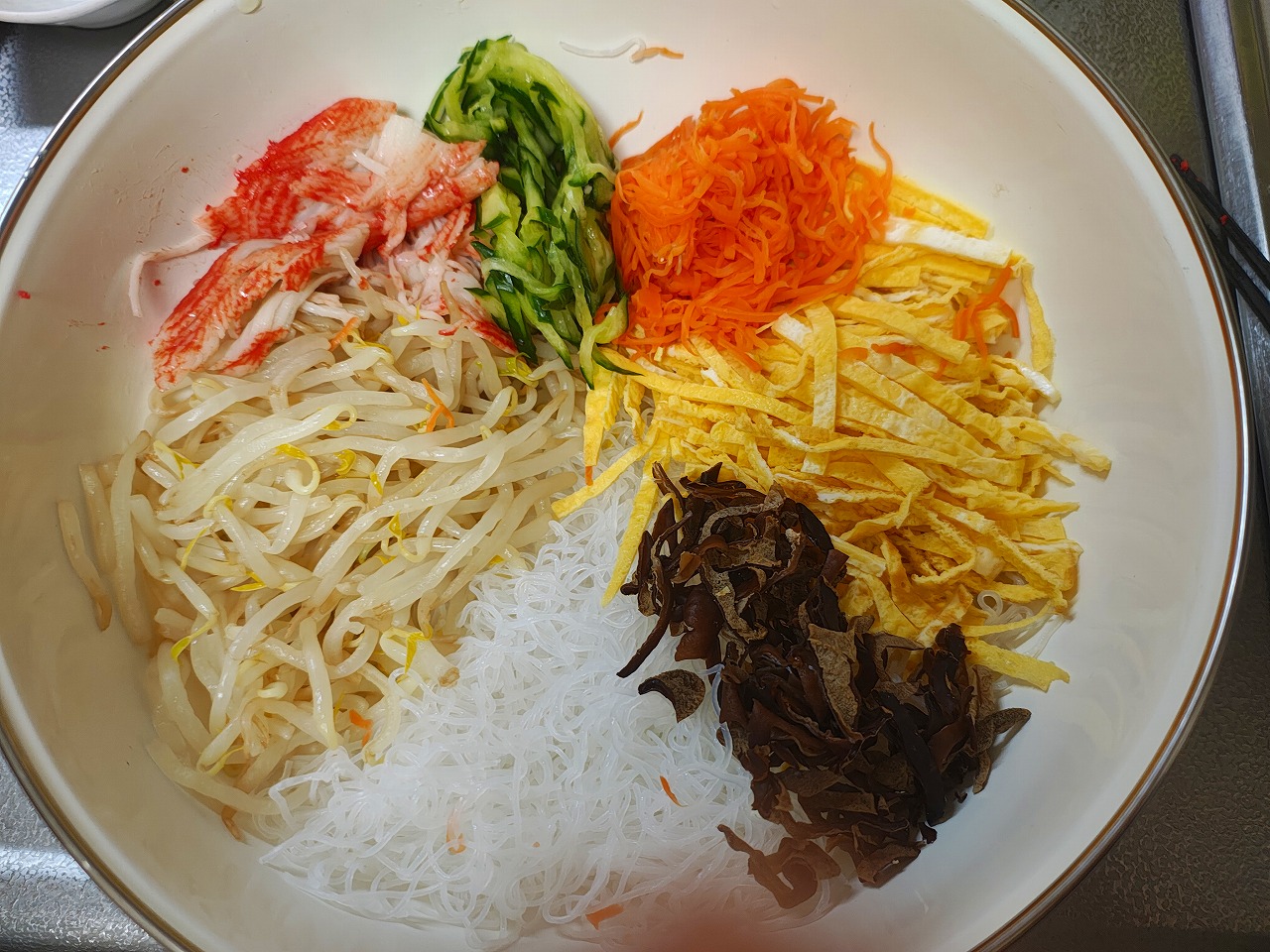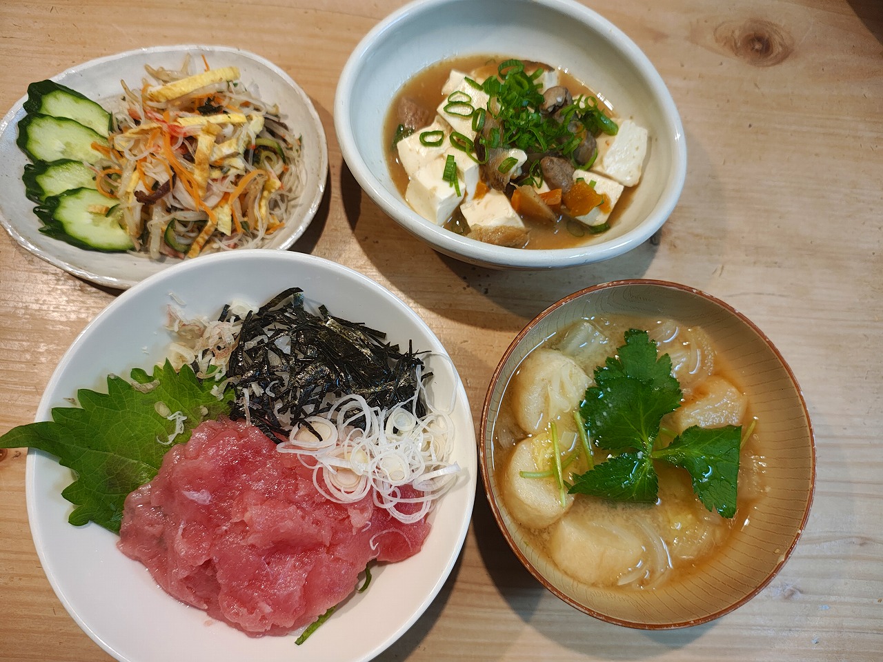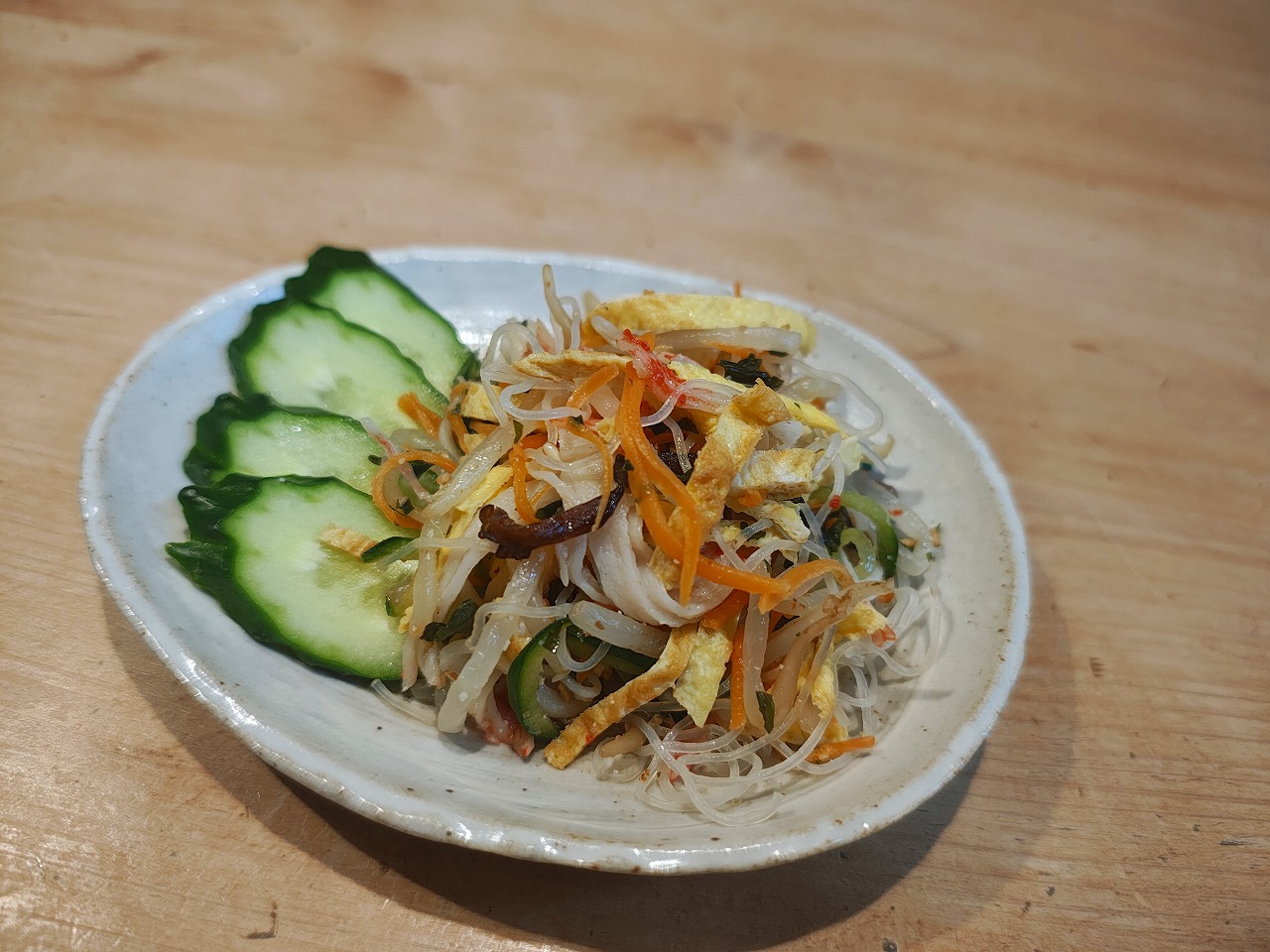 【すし酢、醬油、ごま油】 で和えて、サラダです。