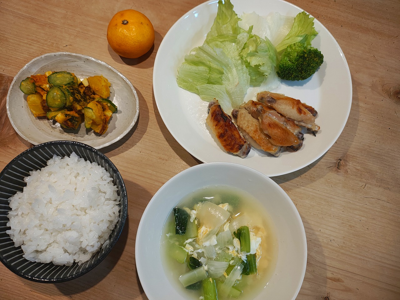 手羽中の塩麹グリル 2025/11/12 2025/11/12 献立 夕ごはんの紹介です。 鶏手羽中を塩こうじに漬けこんでおき 魚焼きグリルで焼きました。 塩こうじはお肉の1割の量です。 手羽中の塩こうじグリル かぼちゃ、さつまいも、 レーズン、きゅうり、チーズを合わせて かぼちゃとさつまいものサラダ 小松菜と玉子のスープ みかん 手羽中グリルの献立 ごちそうさまでした。 ブログランキングに参加しております。 よろしければポチッとお願いします。 にほんブログ村 家庭料理ランキング
