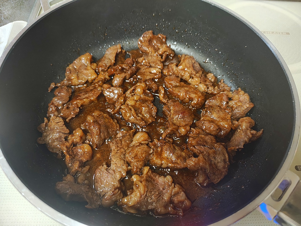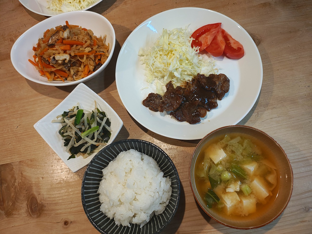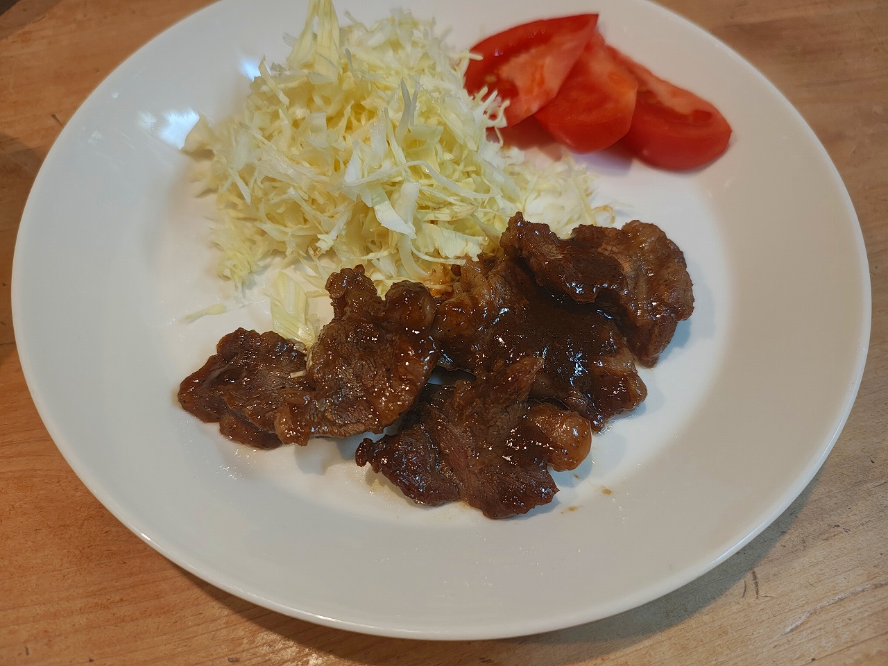 牛肉ソテー 2025/11/13 2025/11/13 献立 夕ごはんの紹介です。 牛肉を焼き肉のたれにからめて フライパンで焼きました。 牛肉ソテー 前日の残り物 切り干し大根の煮物 もやしと小松菜のナムル お味噌汁 牛肉ソテーの献立 ごちそうさまでした。 ブログランキングに参加しております。 よろしければポチッとお願いします。 にほんブログ村 家庭料理ランキング