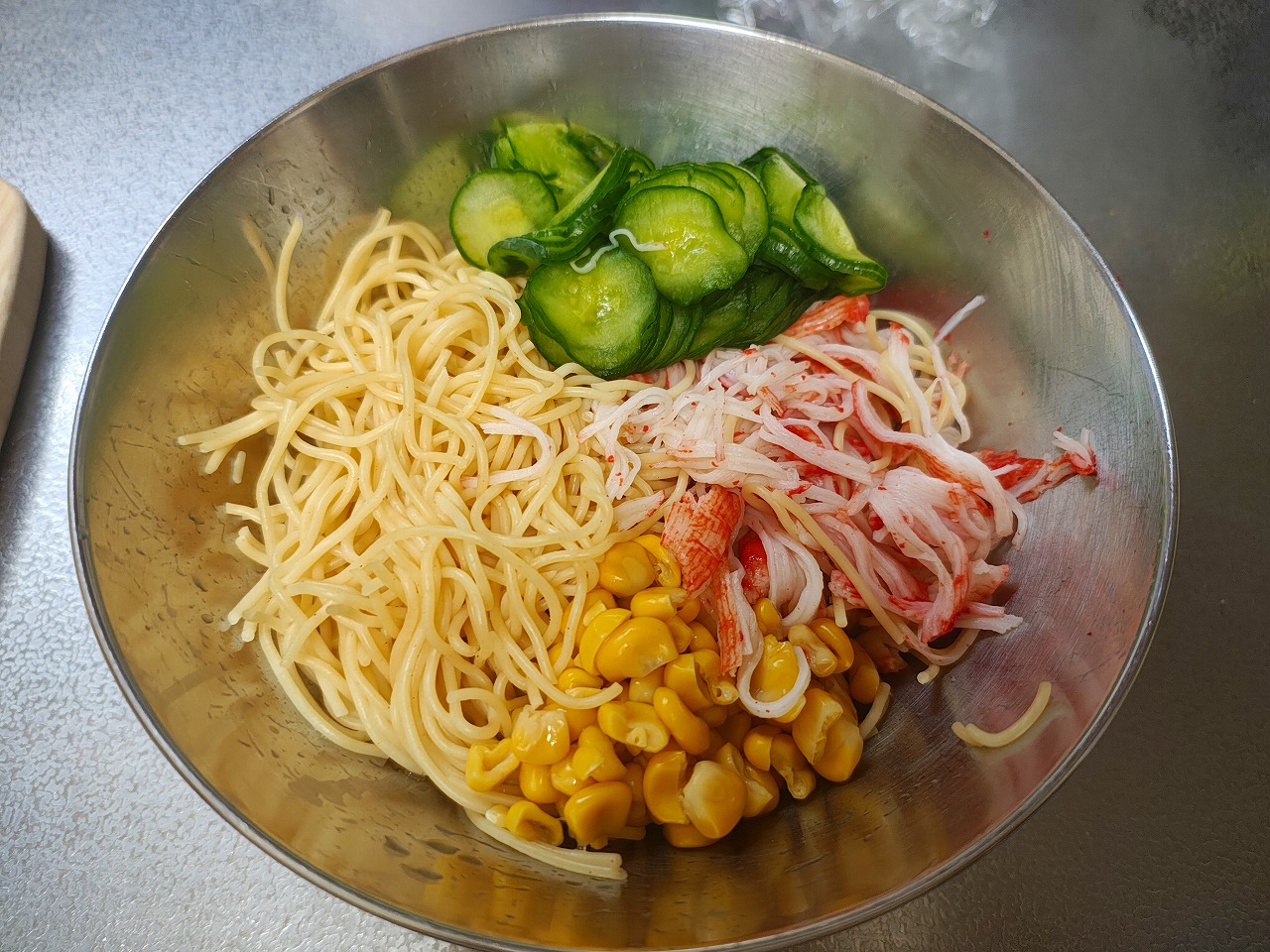 きゅうり、カニカマ、コーンを合わせ