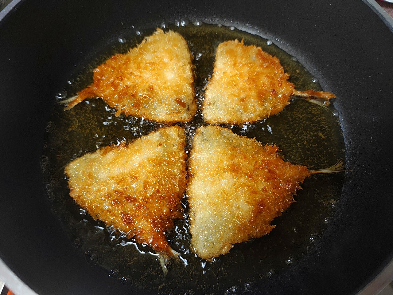 アジをフライパンで揚げ焼き