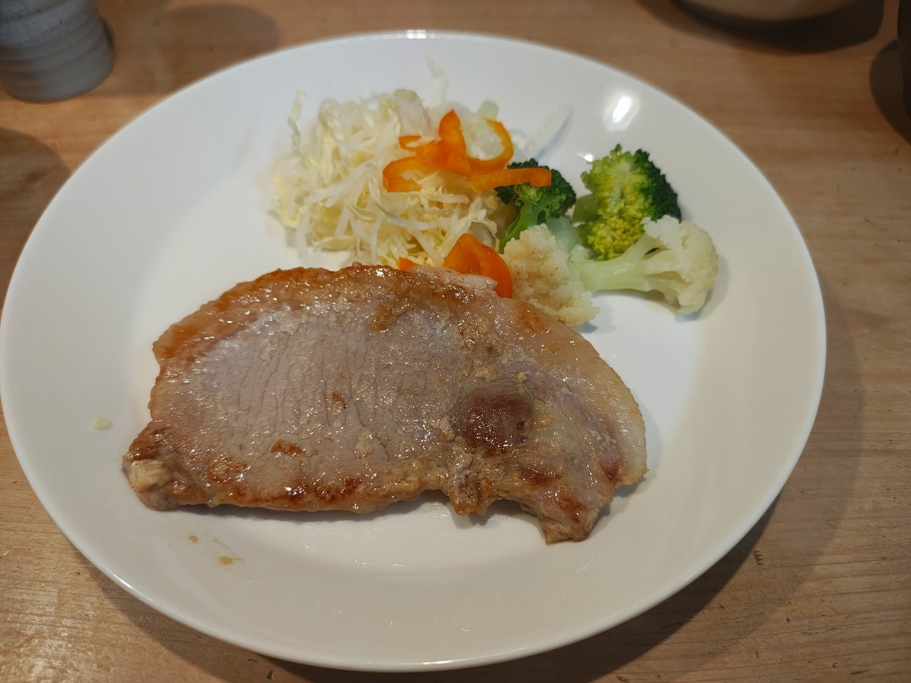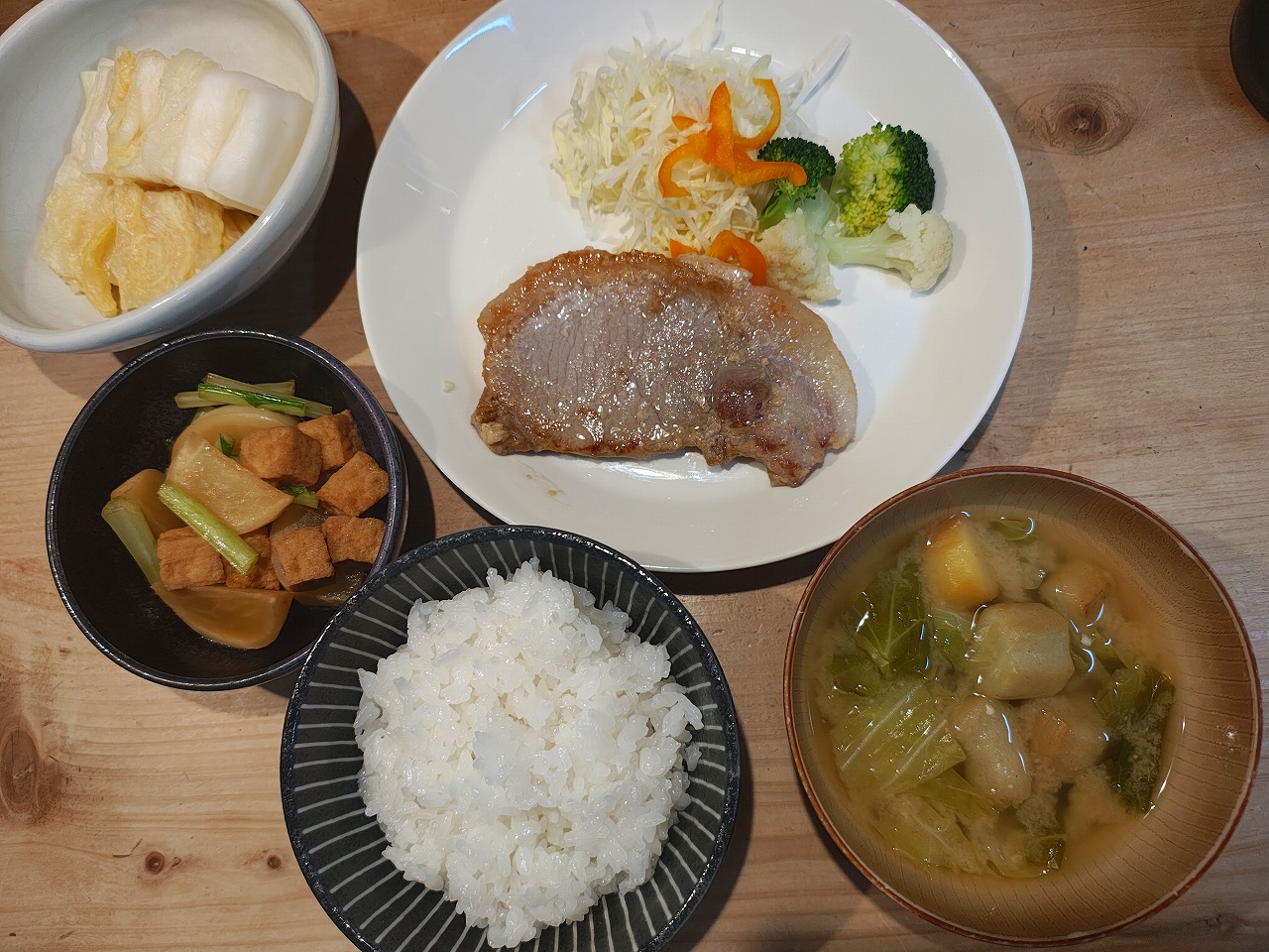 豚ロースの塩こうじ焼き 2025/11/29 2025/11/29 献立 夕ごはんの紹介です。 豚ロース肉を塩こうじに漬けこんだものを フライパンで焼きました。 火力が強いと焦げやすいので、火加減注意。 豚ロースの塩こうじ焼き 塩こうじのおかげでお肉はやわらか、 旨味もアップです。 かぶと厚揚げの煮物 かぶは火の通りが早いので、 時間かからずに煮上がります。 お味噌汁 白菜の漬物 豚ロース塩こうじ焼きの献立 ごちそうさまでした。 ブログランキングに参加しております。 よろしければポチッとお願いします。 にほんブログ村 家庭料理ランキング