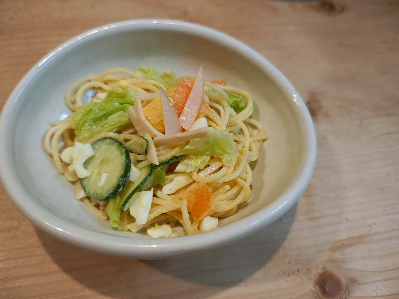 キャベツ、人参、きゅうり、ゆで玉子、ハムを合わせて