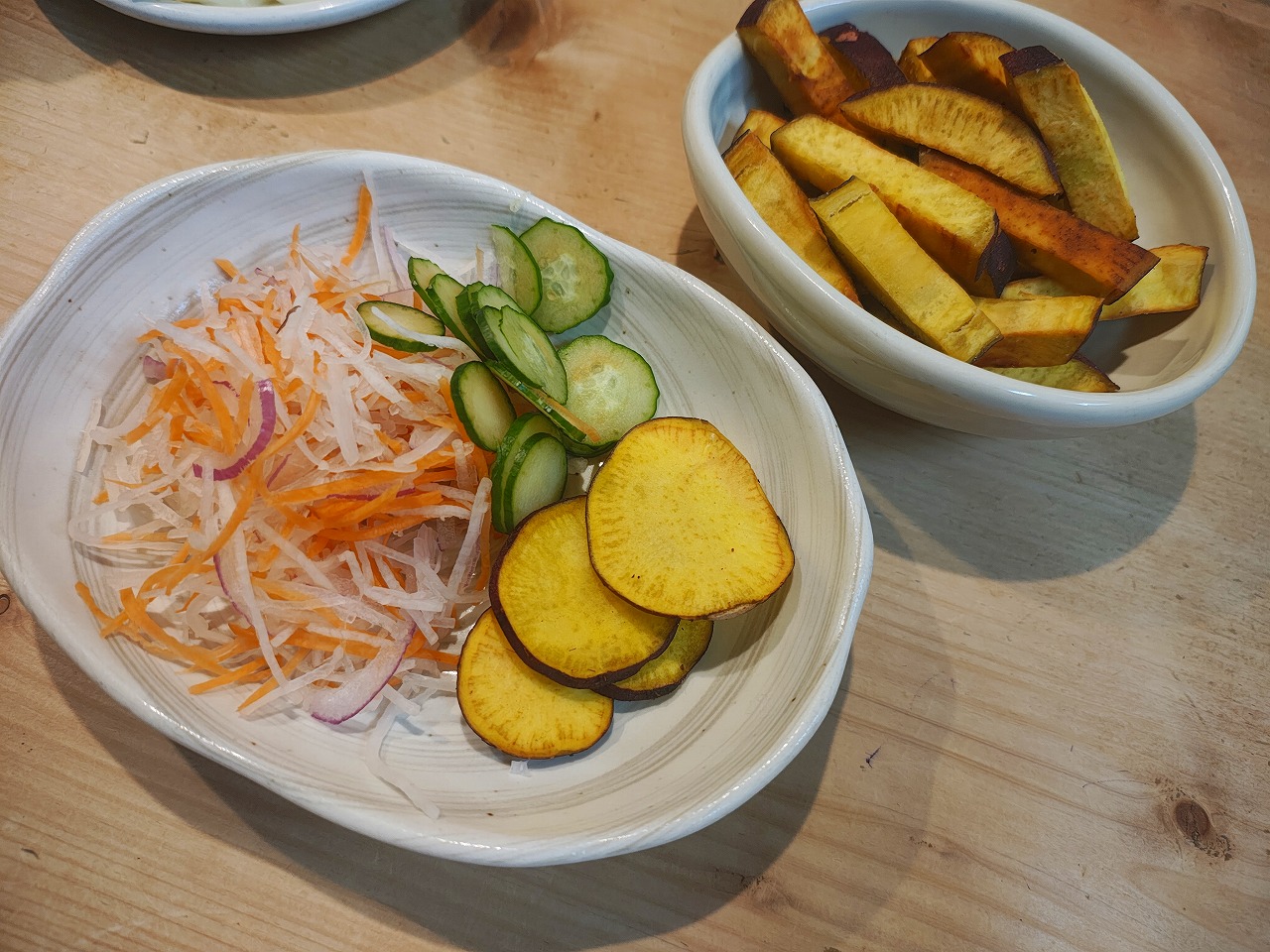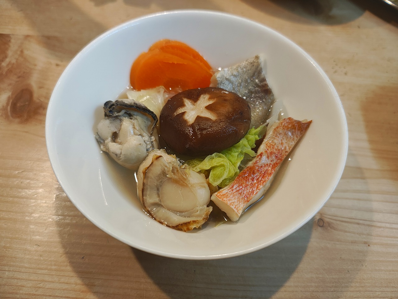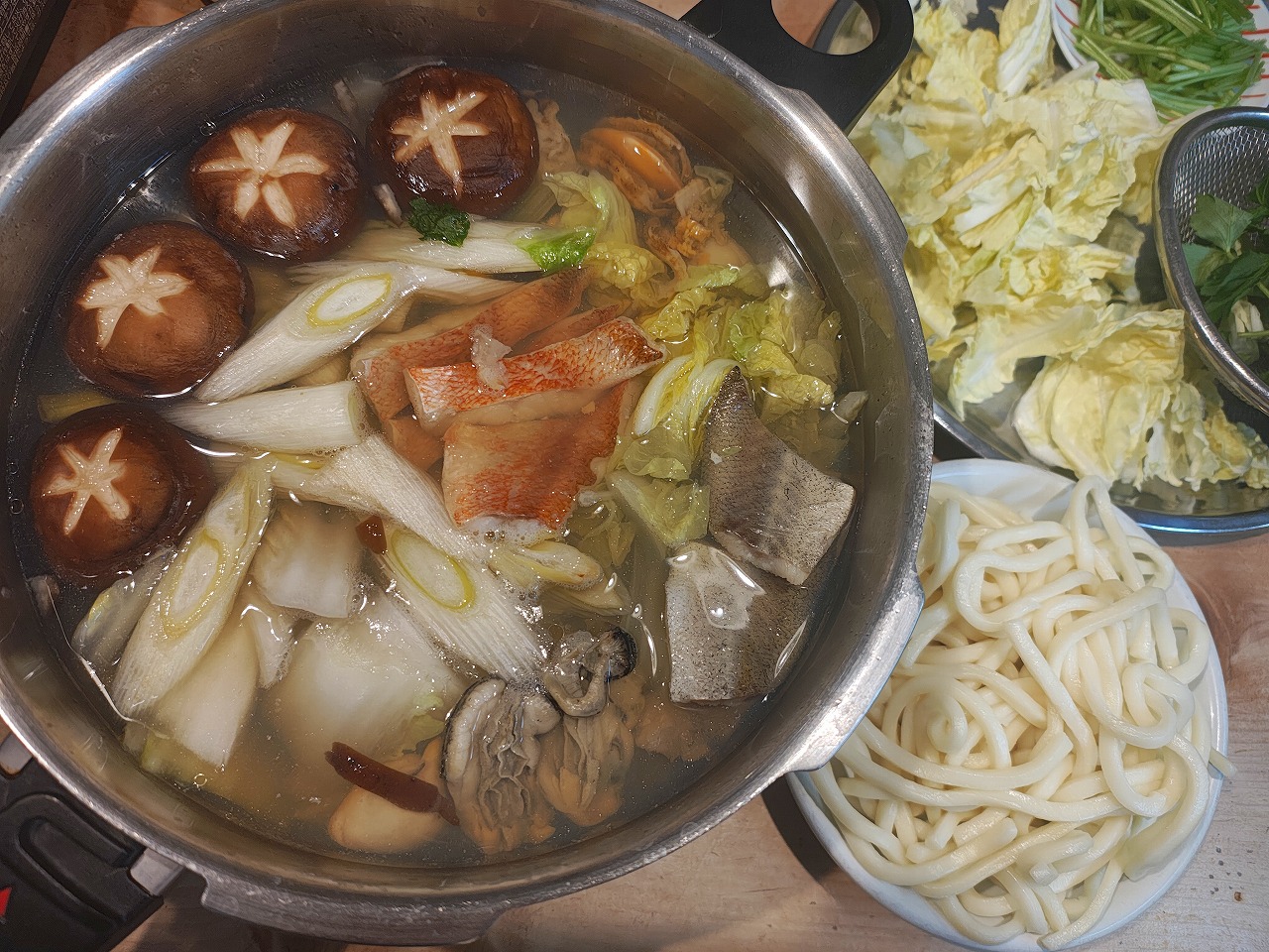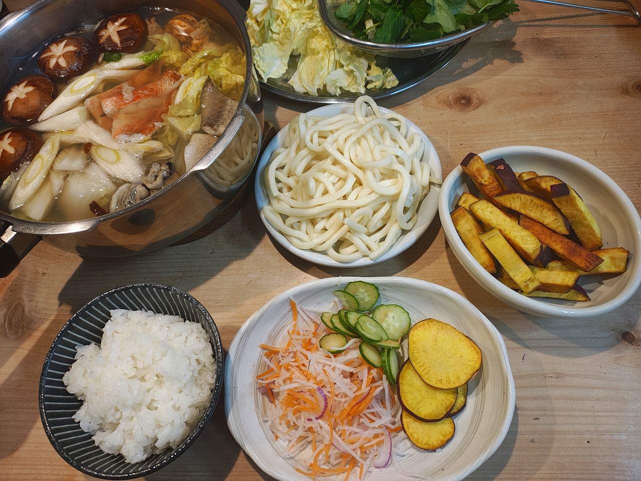 海鮮鍋 2025/12/12 2025/12/12 献立 夕ごはんの紹介です。 野菜をたくさんカットして、 赤魚、タラ、ホタテ、牡蛎がメインの具 海鮮鍋 魚介から出ただしが美味しいです。 サツマイモの乱切りを素揚げ。 切り方を変えて、薄切りサツマイモ 大根サラダとさつまいもチップ ホクホクとパリパリ 2種類の食感。 どちらも美味しいです。 海鮮鍋の献立 ごちそうさまでした。 ブログランキングに参加しております。 よろしければポチッとお願いします。 にほんブログ村 家庭料理ランキング