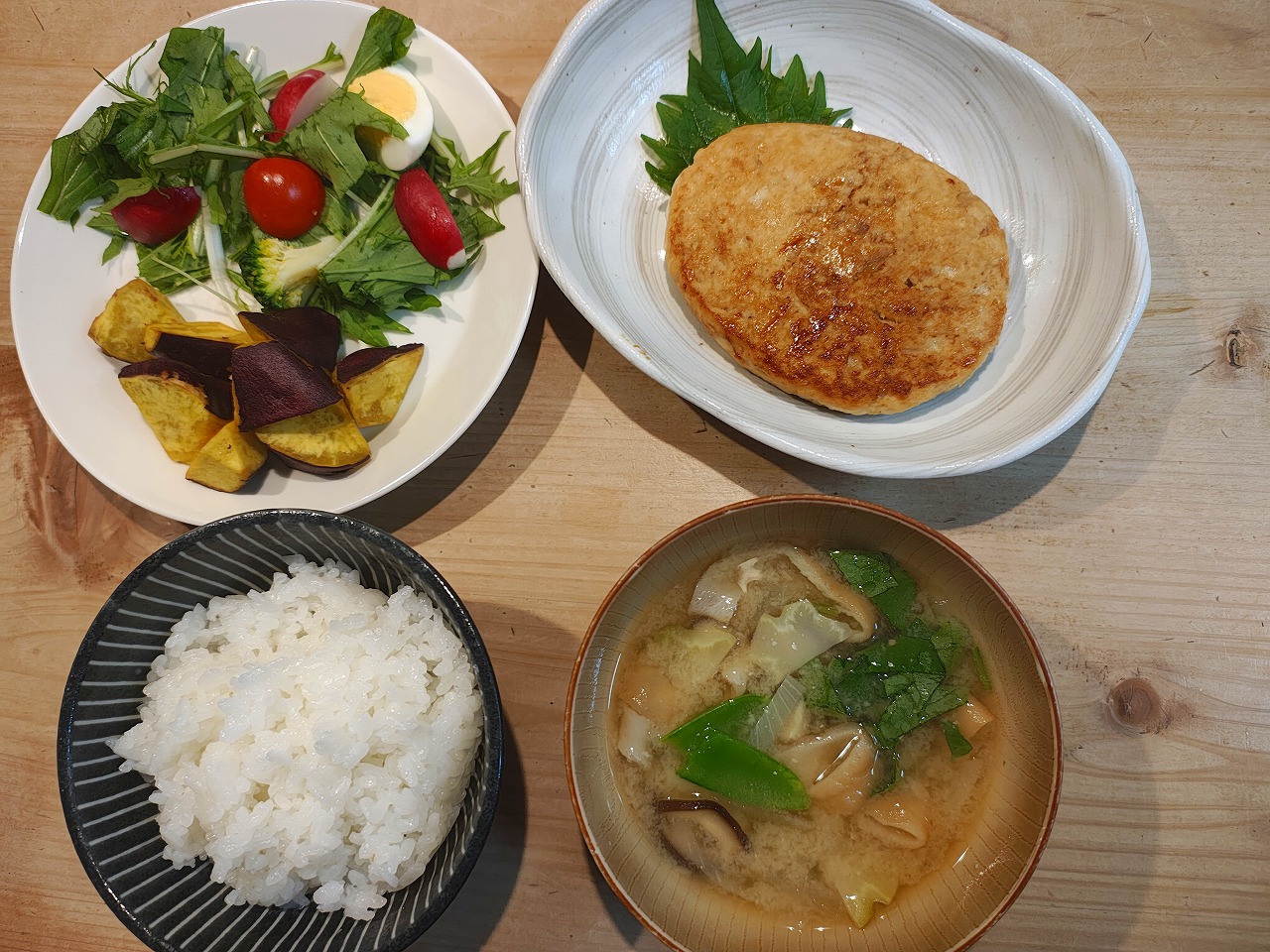 豆腐ハンバーグ 2025/12/21 2025/12/21 献立 夕ごはんの紹介です。 鶏ひき肉と豆腐、玉ねぎ、生姜を合わせて ハンバーグにしました。 鶏肉と豆腐でヘルシー 豆腐ハンバーグ サツマイモの乱切りを素揚げ サツマイモ素揚げと生野菜サラダ お味噌汁 豆腐ハンバーグの献立 ごちそうさまでした。 ブログランキングに参加しております。 よろしければポチッとお願いします。 にほんブログ村 家庭料理ランキング