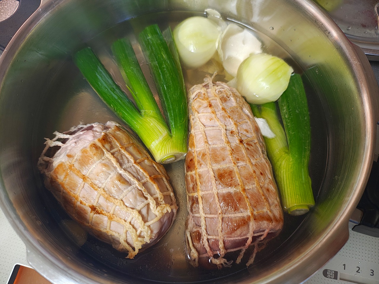 長ネギ、玉ねぎ、生姜、にんにくを入れて