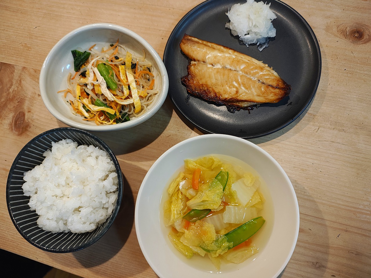あじ醬油干し 2026/1/31 2026/1/31 献立 夕ごはんの紹介です。 焼き魚はグリルにお任せして焼くだけ。 らくちんメニューです。 あじの醤油干し 大量に作ったゆで鶏↓ まだ残っていたので、 春雨サラダの具にしました。 もやし、錦糸玉子、小松菜、人参も入れて。 春雨サラダ 白菜のスープ 焼き魚の献立 ごちそうさまでした。 ブログランキングに参加しております。 よろしければポチッとお願いします。 にほんブログ村 家庭料理ランキング