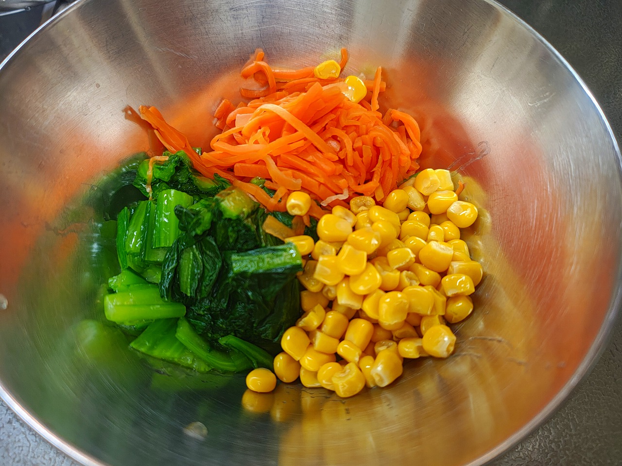 トマト缶、ケチャップ、ソース、コンソメ顆粒を加えて
