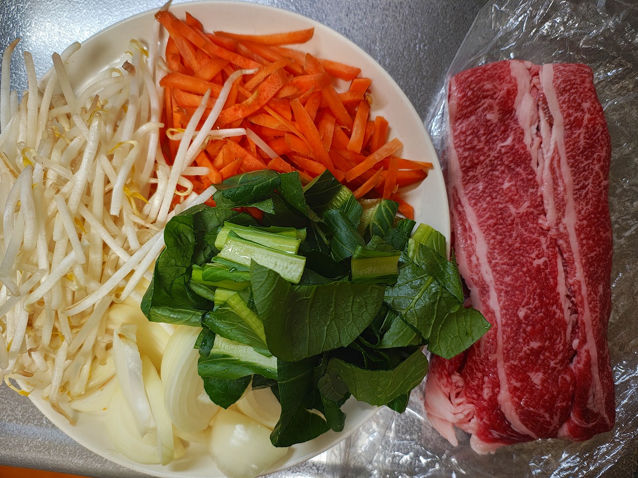 プルコギ 2026/2/16 2026/2/16 献立 夕ごはんの紹介です。 主菜は牛薄切り肉を使って。 小松菜、もやし、人参と一緒に炒めて 甘辛く味付けしました。 プルコギ ニンニクが効いた甘辛味で ごはんがすすみます。 サツマイモ、かぼちゃ、枝豆を合わせて かぼちゃサラダ お味噌汁 プルコギの献立 ごちそうさまでした。 ブログランキングに参加しております。 よろしければポチッとお願いします。 にほんブログ村 家庭料理ランキング
