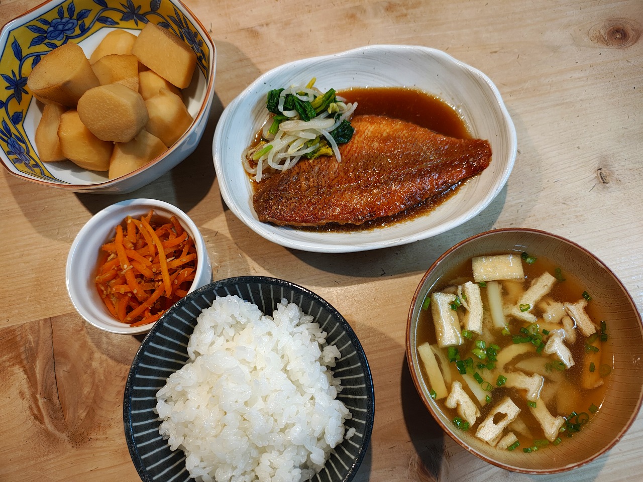 赤魚の煮つけ 2026/2/11 2026/2/11 献立 夕ごはんの紹介です。 赤魚の煮つけ 皮が赤い金目鯛に煮てはいますが、 種類も味も、そしてお値段も違います。 金目鯛のほうがうまみがありますが、 高級魚なのでなかなか手が出ません。 まあ、赤魚も十分美味しいので、満足です🐟 調理方法はメインの一緒になってしまいましたが… 里芋はやっぱり定番の煮物で。 里芋の煮物 人参のきんぴら お味噌汁 赤魚の煮つけの献立 ごちそうさまでした。 ブログランキングに参加しております。 よろしければポチッとお願いします。 にほんブログ村 家庭料理ランキング