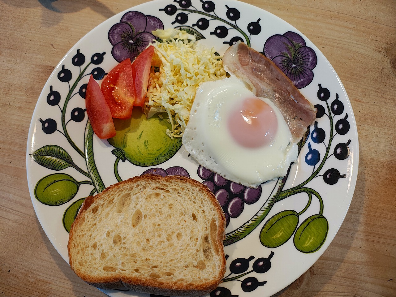 生野菜とベーコンエッグ