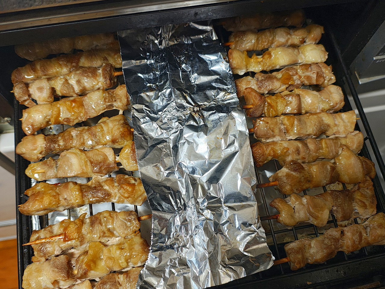 串が焦げるのでアルミホイルをかぶせておきましたが…