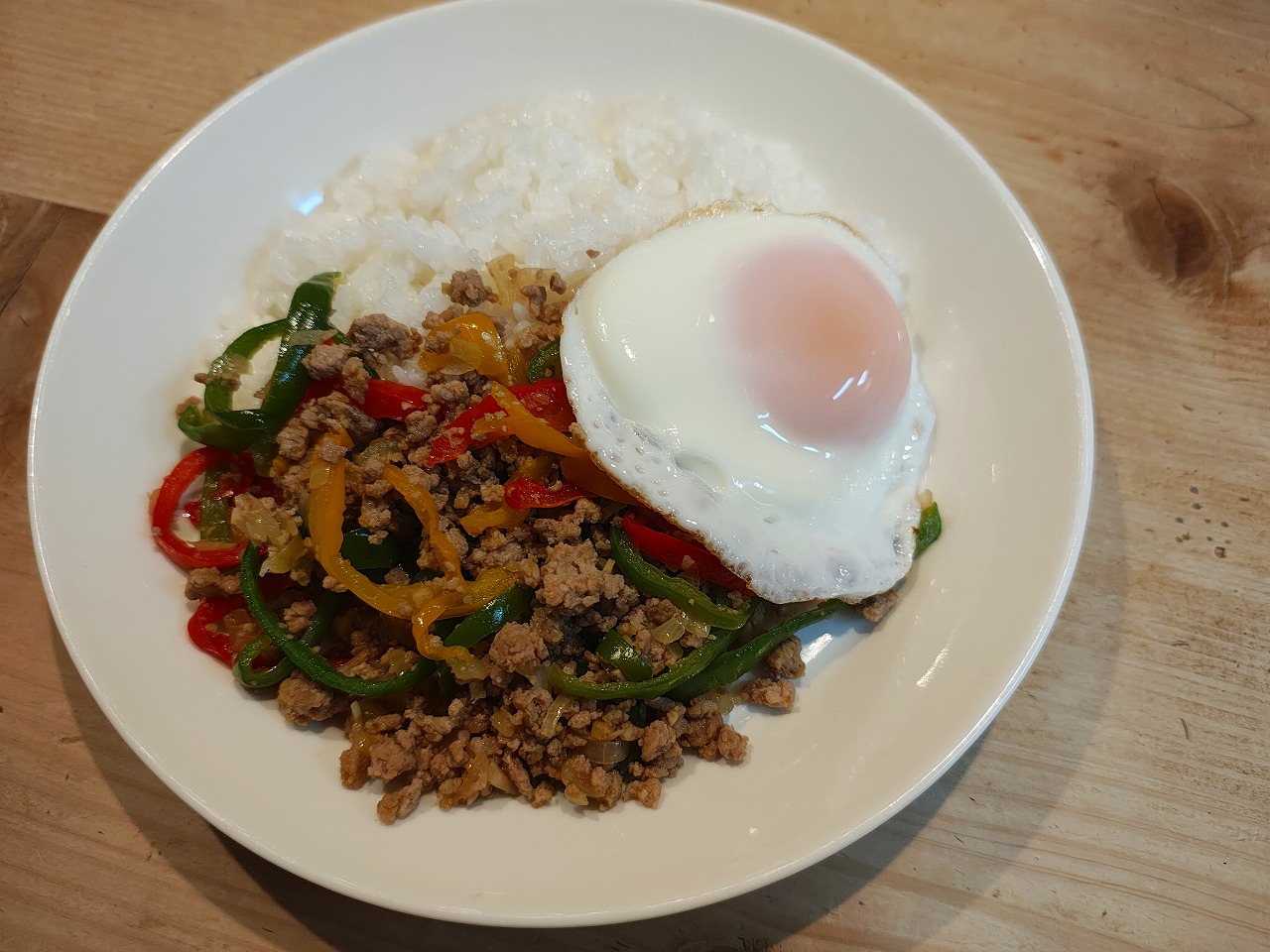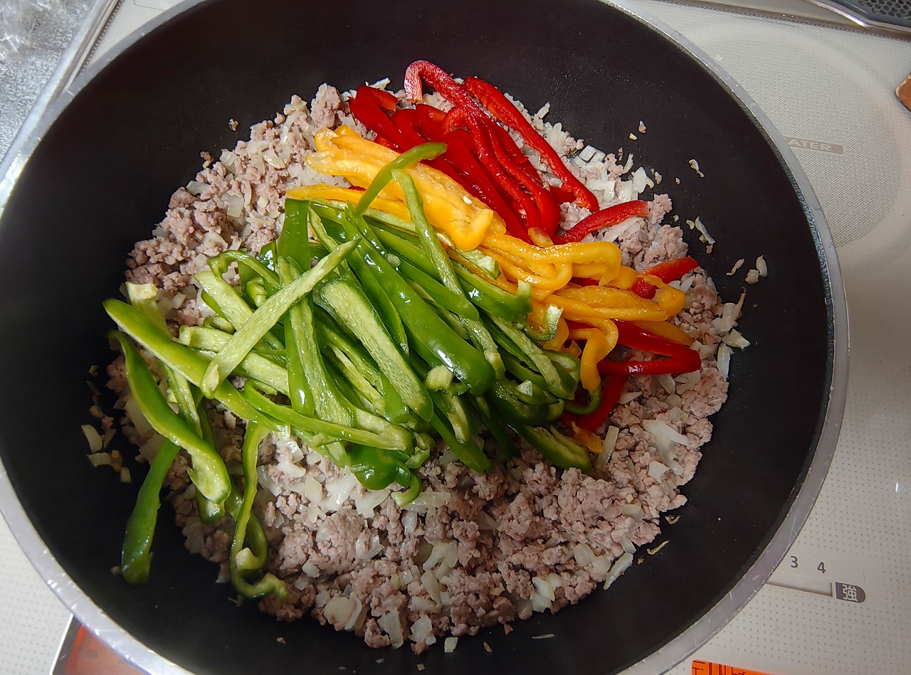 ピーマンとひき肉そぼろごはん