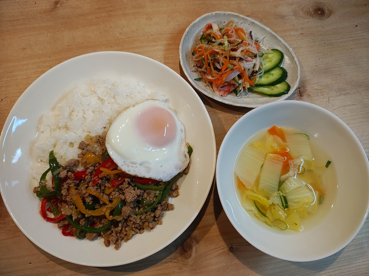 ピーマンひき肉そぼろごはんの献立