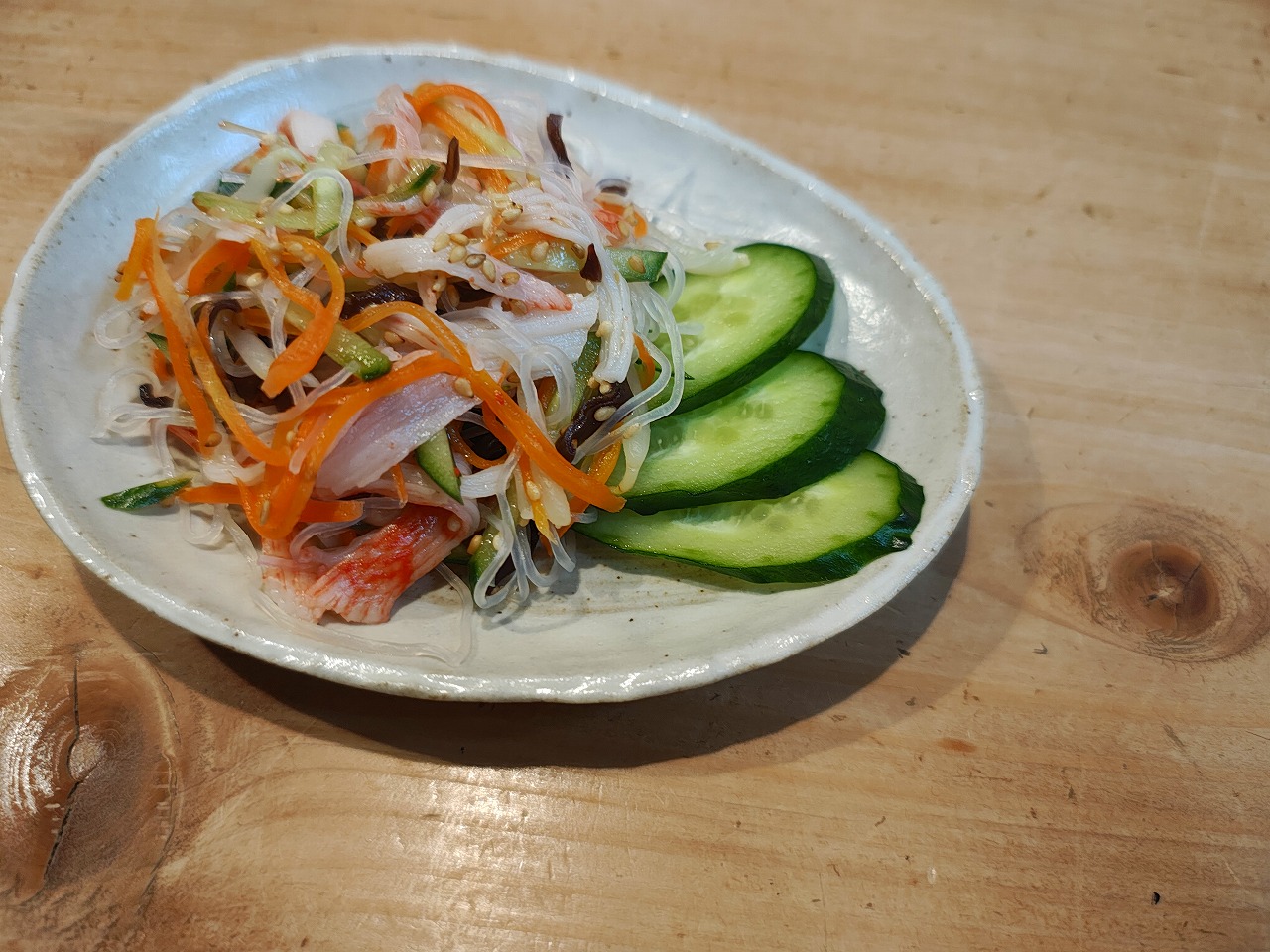 春雨、きゅうり、人参、もやし、カニカマ、きくらげを合わせて