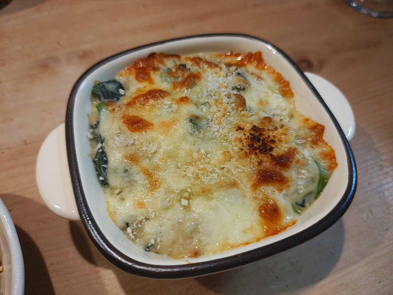 牡蛎とほうれん草のグラタン 2026/2/28 2026/2/28 献立 夕ごはんの紹介です。 玉ねぎ、しめじ、牡蛎をバターで炒め 薄力粉をまぶしてさらに炒めます。 そこに牛乳とコンソメスープを入れて 塩こしょうで味を整えます。 別にゆでておいたほうれん草を入れて グラタンの具のできあがり。 チーズとパン粉をのせて魚焼きグリルで加熱。 牡蛎とほうれん草のグラタン 赤ピーマン入りで鮮やか スパゲッティサラダ キャベツと玉子のスープ 牡蛎ほうれん草グラタンの献立 ごちそうさまでした。 ブログランキングに参加しております。 よろしければポチッとお願いします。 にほんブログ村 家庭料理ランキング