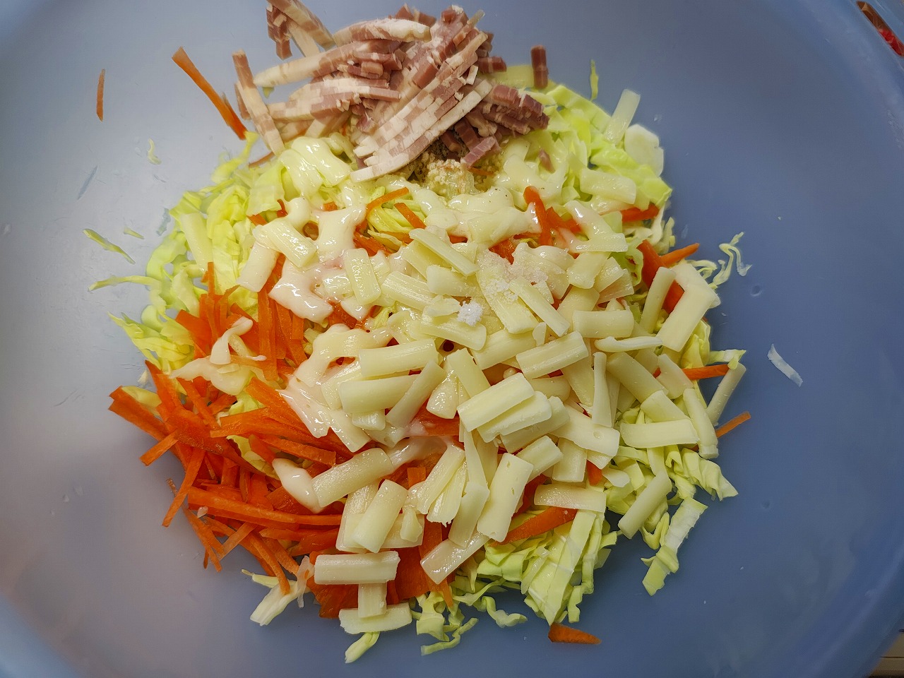 キャベツ、人参、ベーコン、シュレッドチーズ