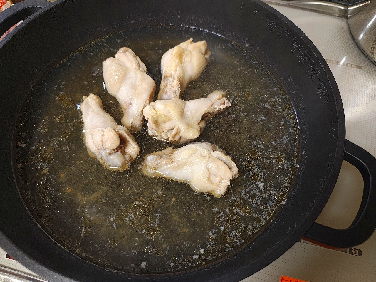 手羽元を煮ます。