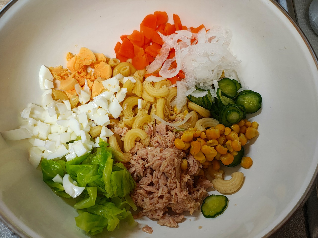 コーン、ゆで卵、ツナ を合わせて