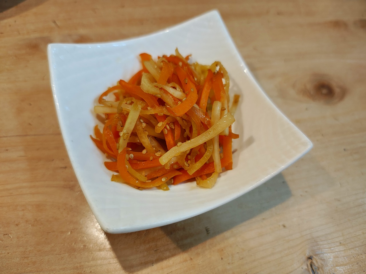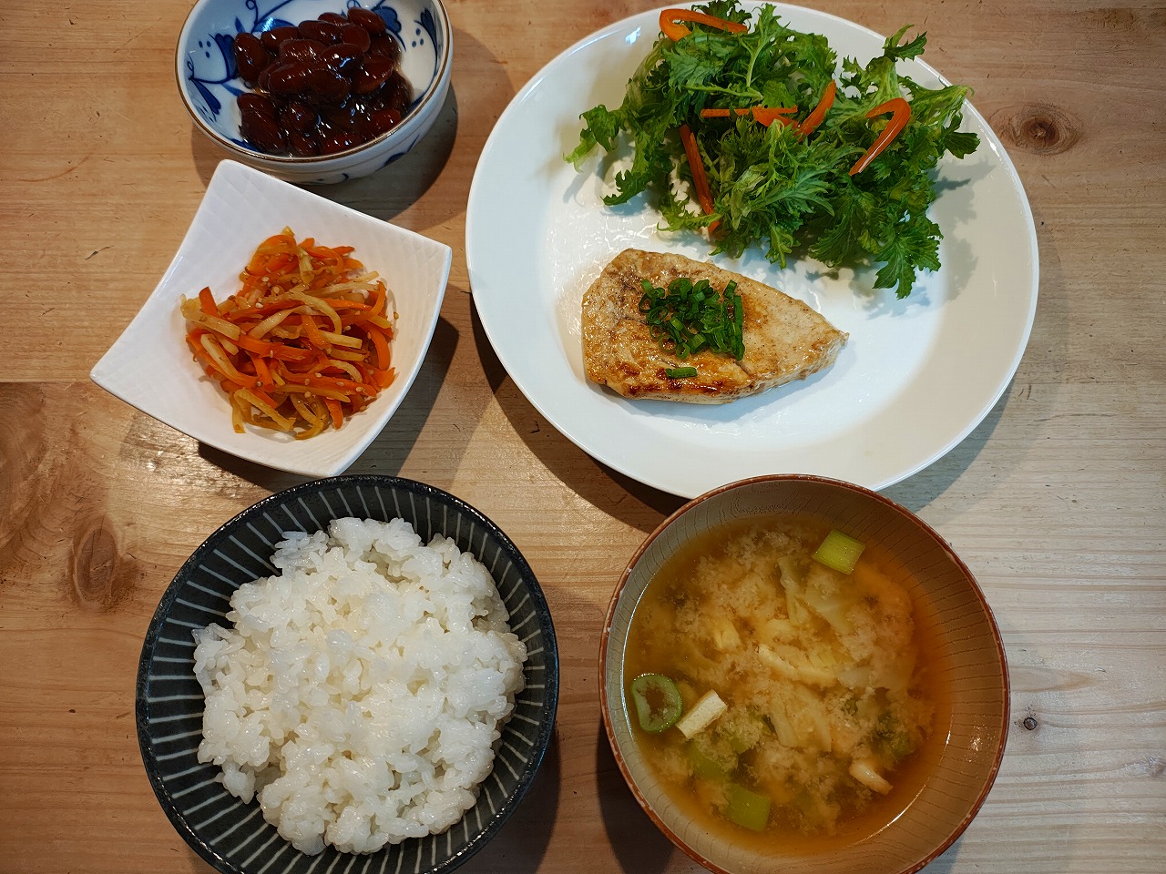 メカジキソテー 2026/3/27 2026/3/27 献立 夕ごはんの紹介です。 前日のおでん↓ その時に使った大根の 皮と面取りした残り。 それを使って、 炒めて醬油と砂糖で味付けしました。 大根の皮と人参のきんぴら メカジキに塩こしょう。 薄力粉をふって、フライパンで焼きました。 火が通ったら、バターと醬油で味付け。 メカジキソテー 魚が苦手な次男も、 これなら文句を言わずに食べました。 お味噌汁 メカジキソテーの献立 ごちそうさまでした。 ブログランキングに参加しております。 よろしければポチッとお願いします。 にほんブログ村 家庭料理ランキング