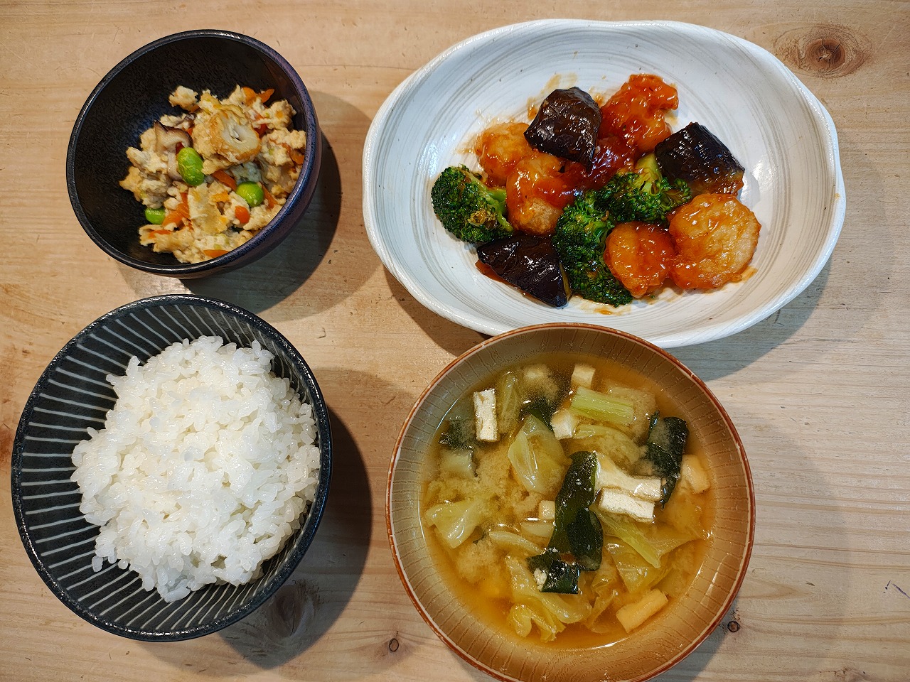 海老と茄子のケチャップ炒めの献立