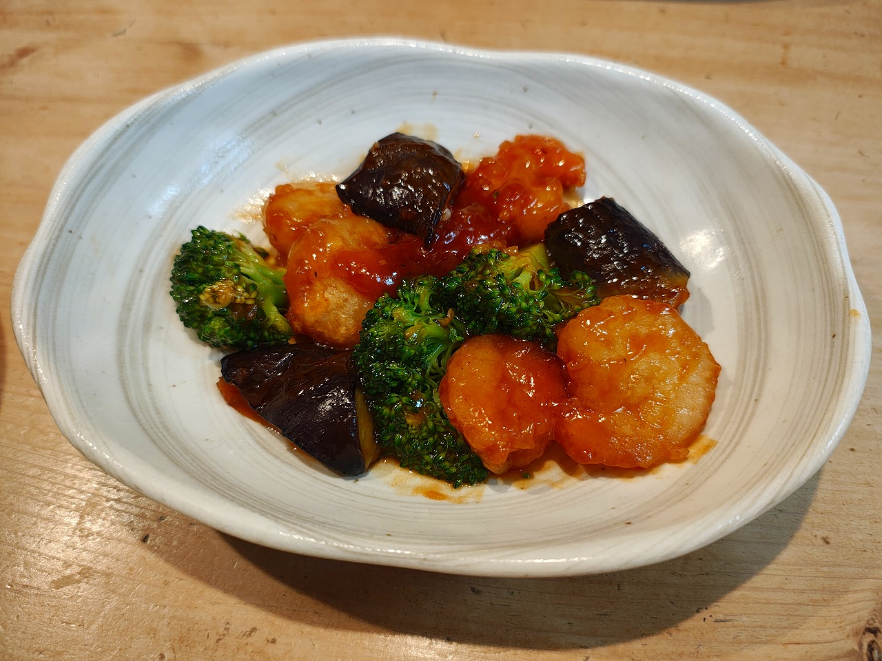 海老と茄子のケチャップ炒め