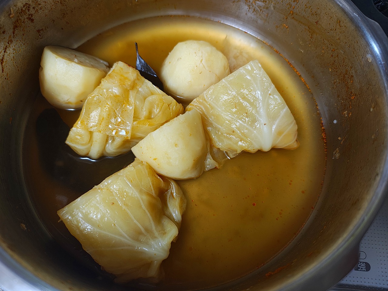キャベツとじゃがいもをコンソメスープで煮ました。