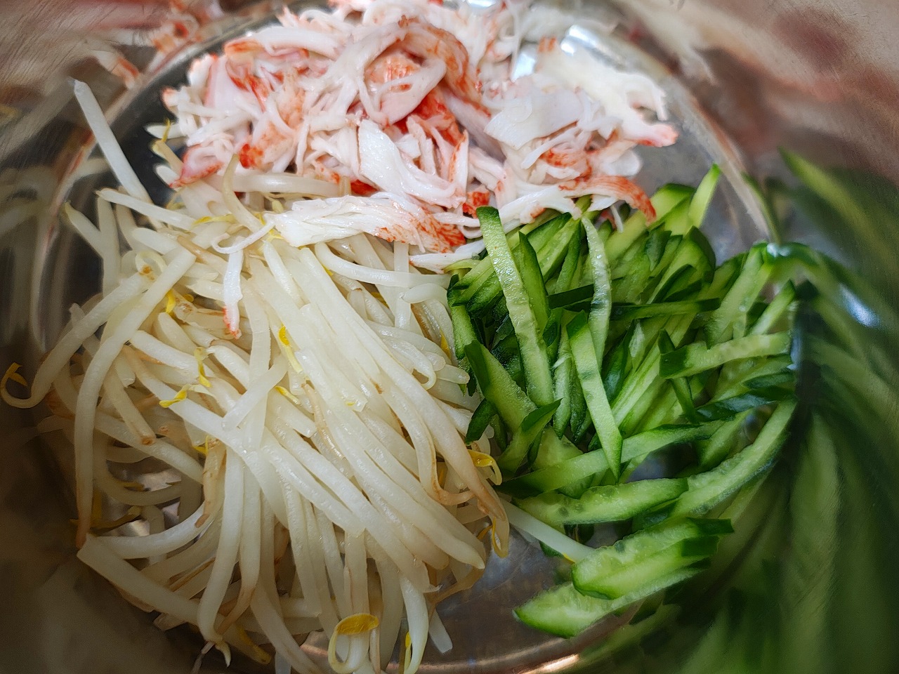 もやし、きゅうり、カニカマを合わせて