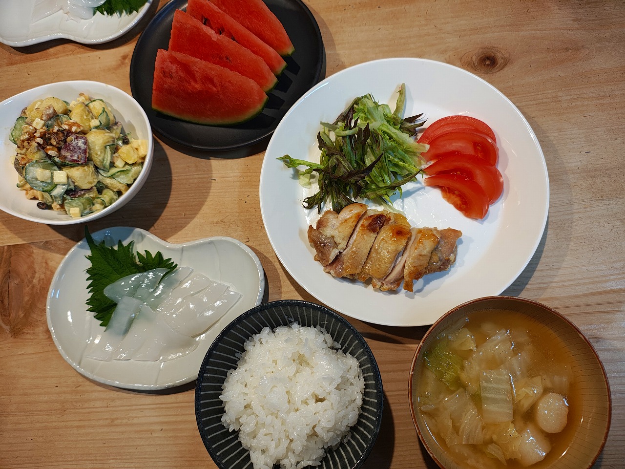 剣先イカのお刺身&鶏肉塩こうじ焼きの献立