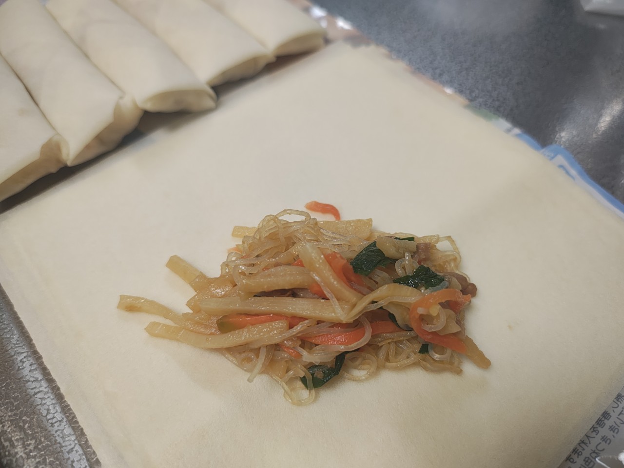 筍がたくさん入った具を巻いて