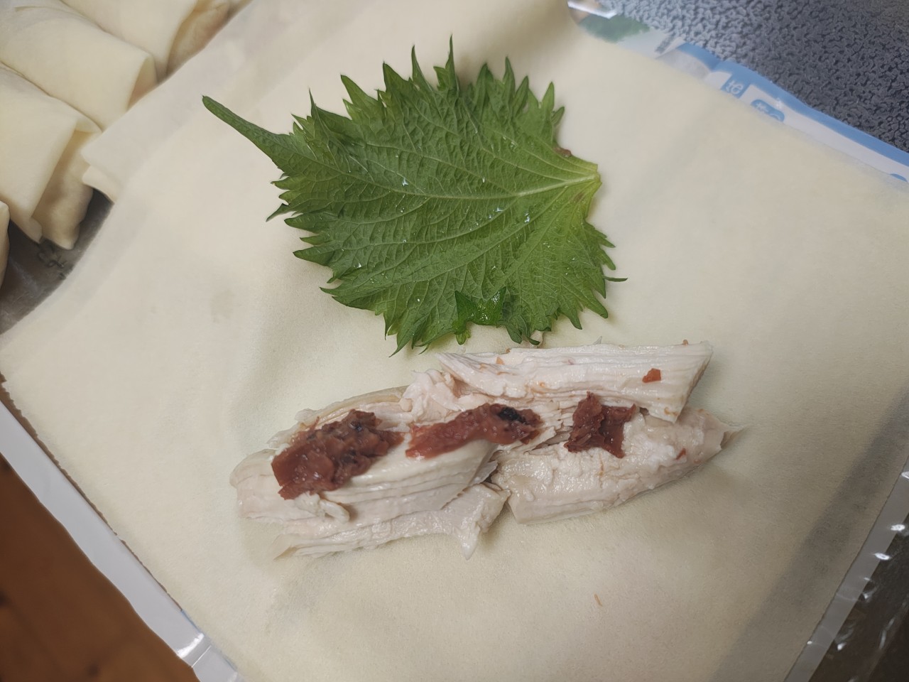 ゆで鶏、梅干し、大葉